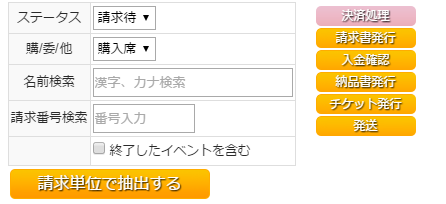 各抽出内容+「請求単位で抽出する」ボタンで注文を抽出