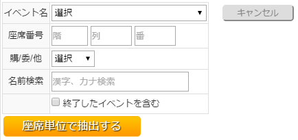 以下の各抽出内容+「座席単位で抽出する」ボタンで座席を抽出