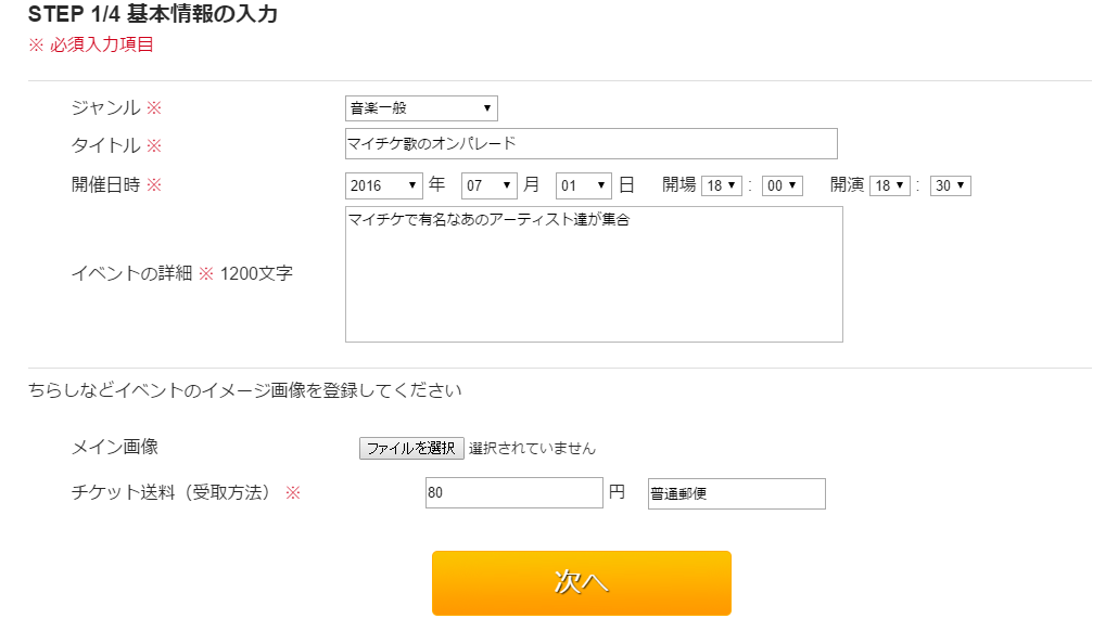 - TOPページ右上の「イベント作成」ボタンからイベントの基本情報を入力します。