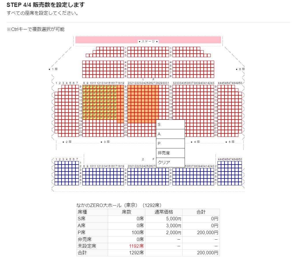 チケットぴあ等に販売を委託する席、事故席などを確保しておく場合は、イベントの作成を終えた後に行います。