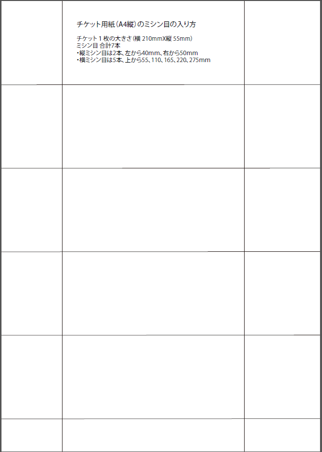 - チケットはシステムが出力するpdfを通常のプリンターで印刷して使います。